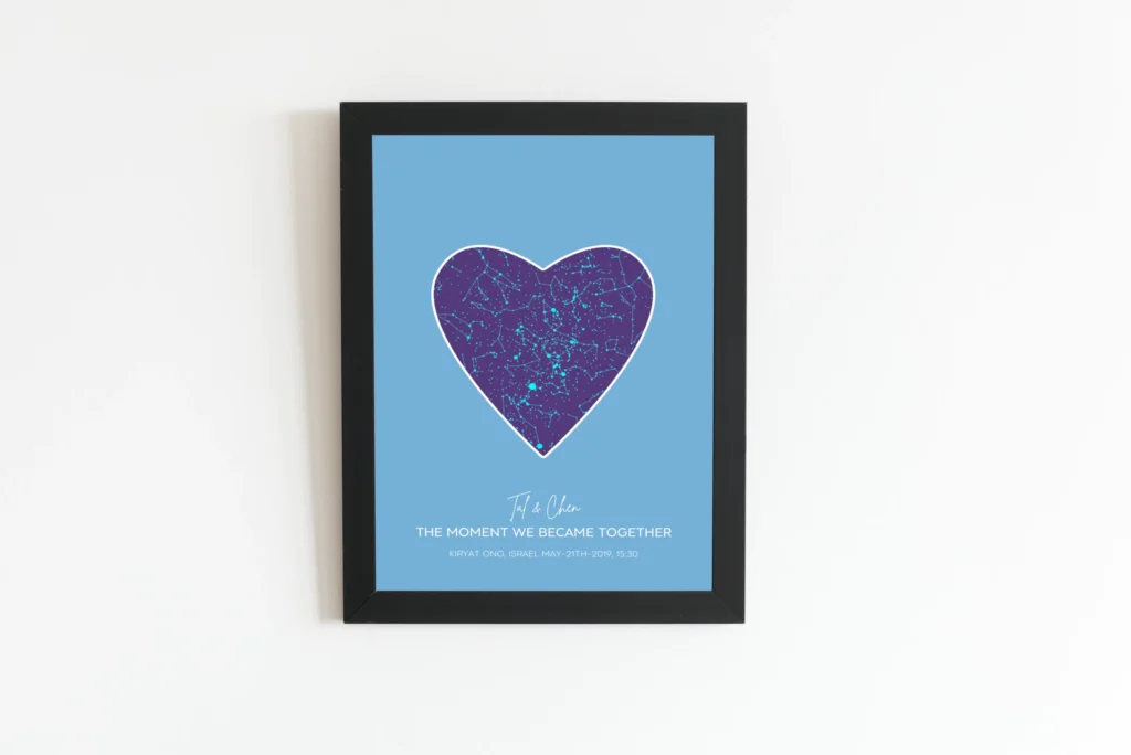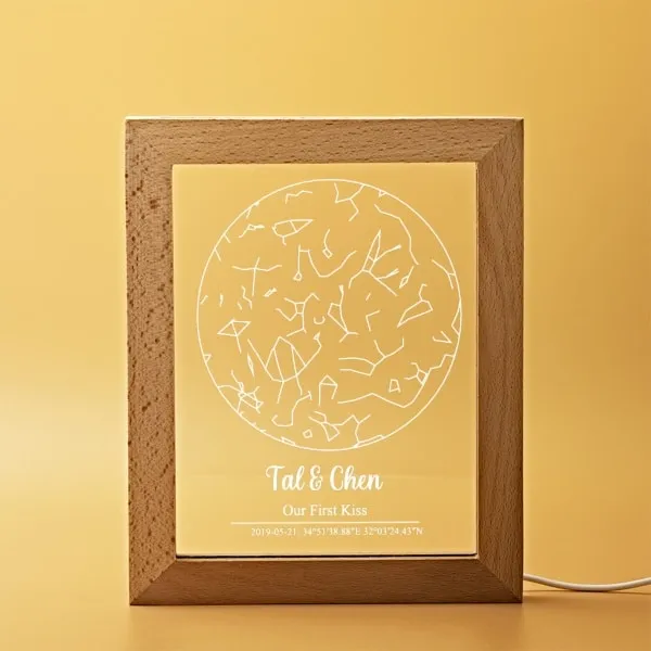 מתנה מעוצבת אישית עם תמונה – מנורה רומנטית בעיצוב מפת כוכבים לאורך