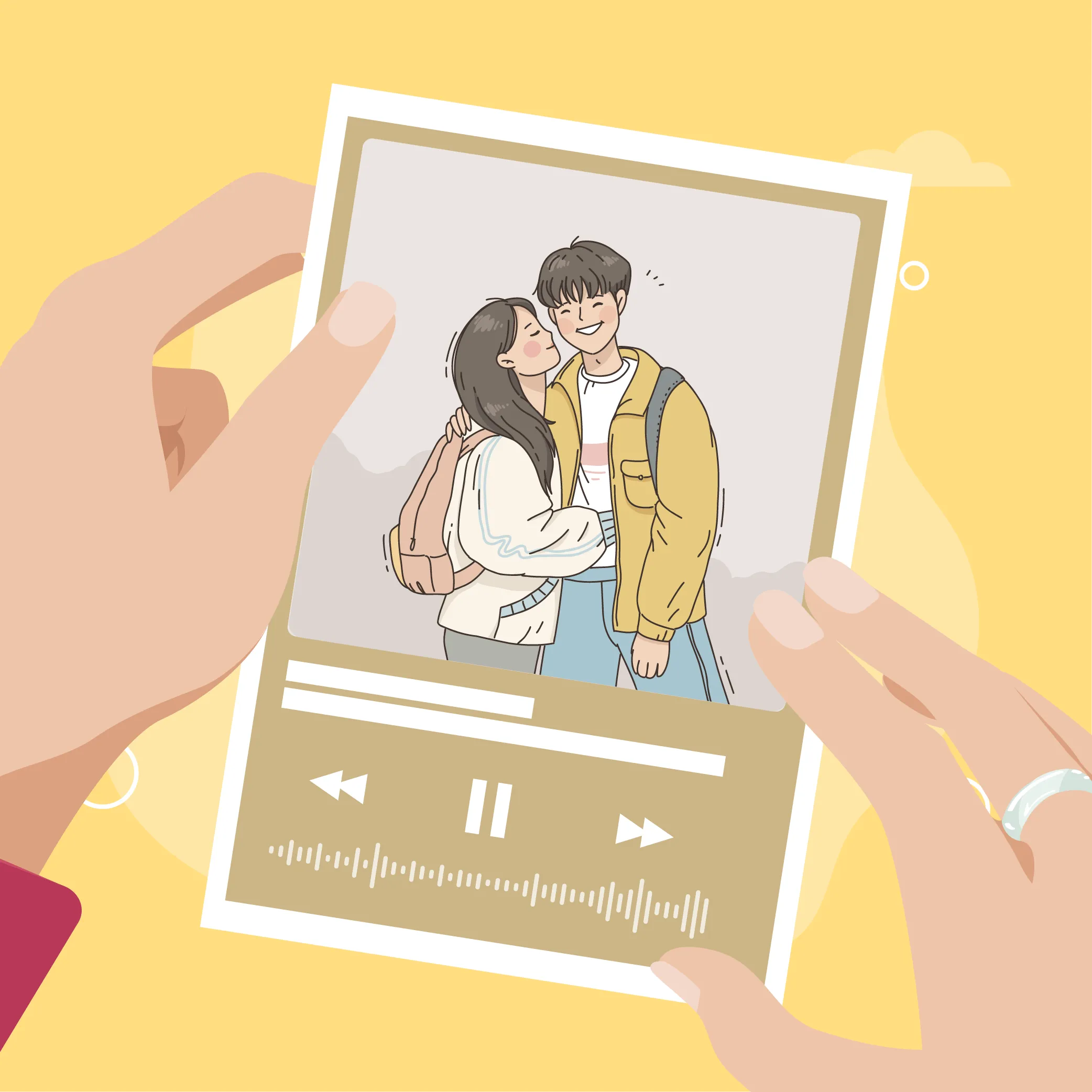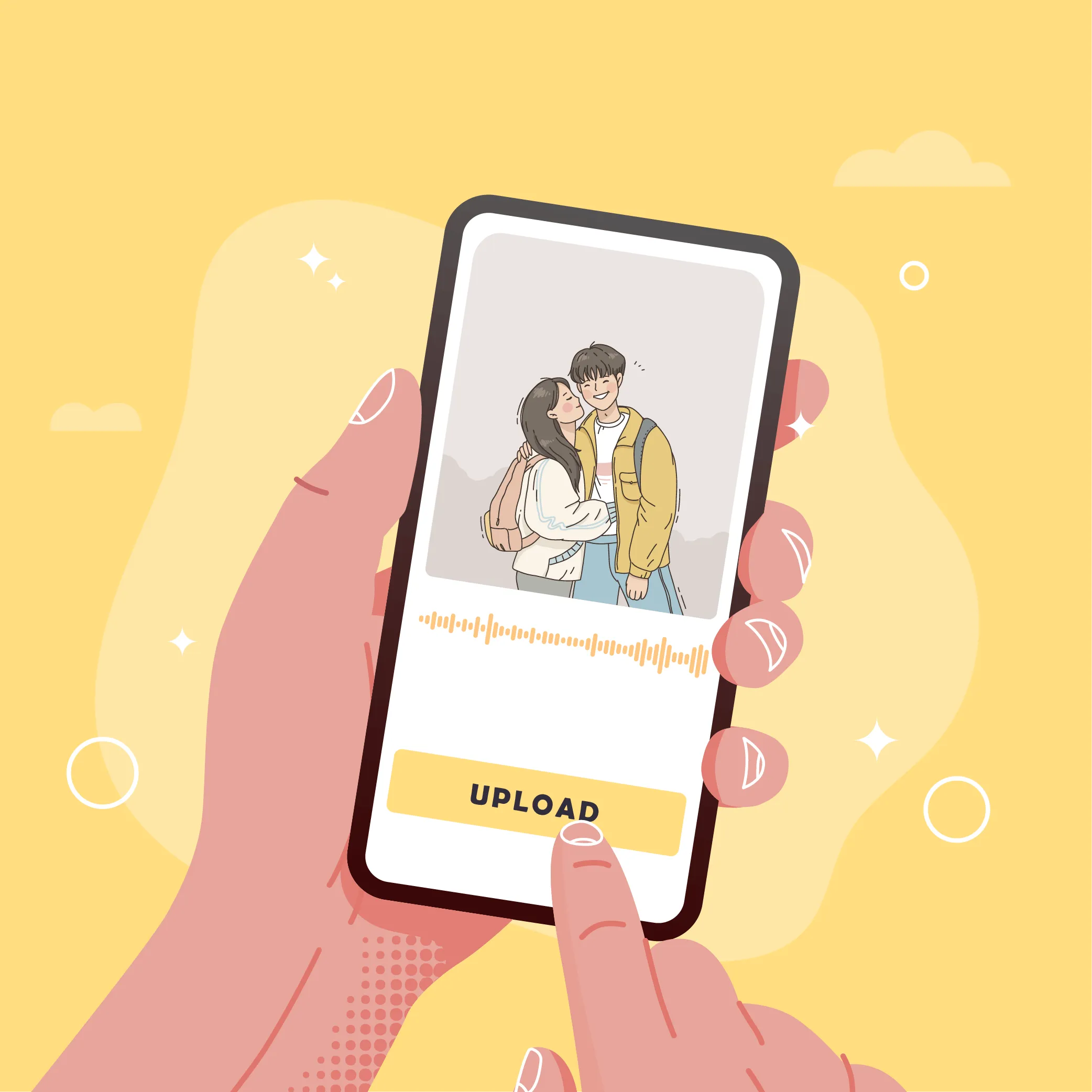 מחזיק מפתחות עם תמונה, תאריך וקוד ספוטיפיי לסריקה
