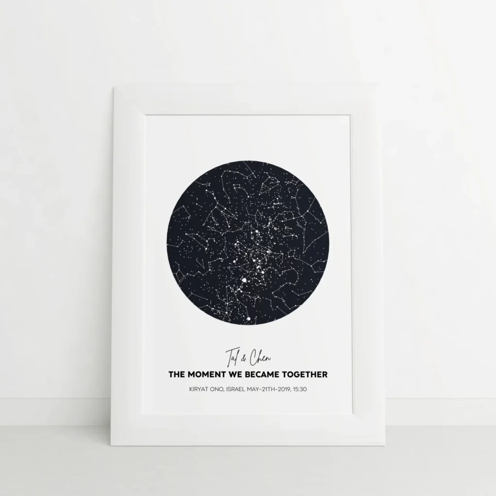 מפת הכוכבים שלנו מאפשרת לכם להנציח את הרגע המיוחד שלכם בזמן בתוך מסגרת מיוחדת שמתעד את השמיים כפי שהיו במאורע המיוחד שלכם, בין אם מדובר ב- יום הולדת, יום נישואין, היום בו פגשת את הנפש התאומה שלך, או כל תאריך שקרוב לליבכם .