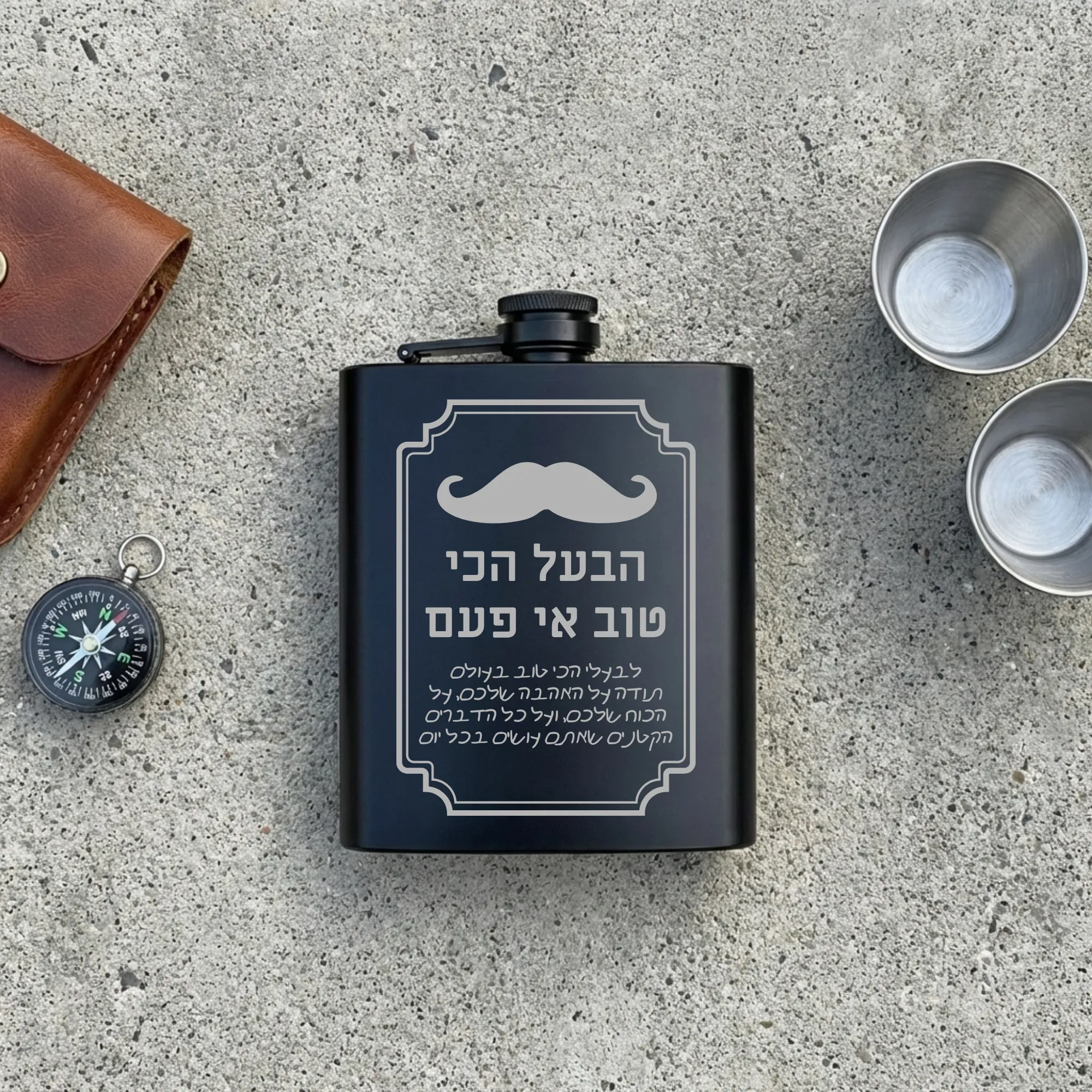 בקבוק מתכת חרוט בהתאמה אישית “הבעל הטוב ביותר אי פעם” כמתנה