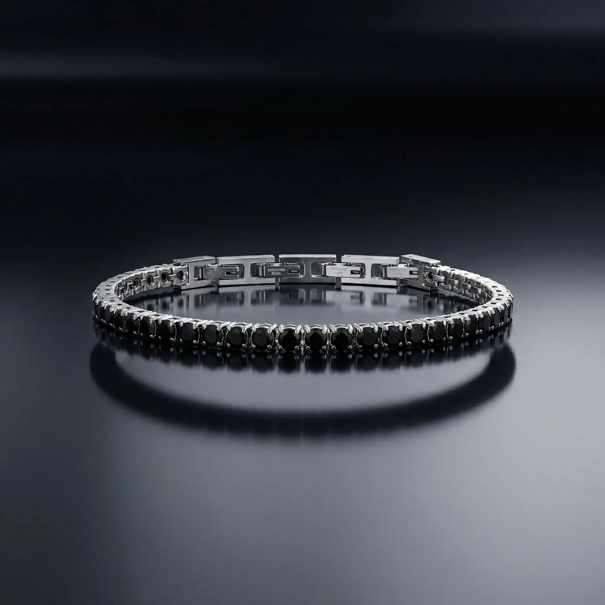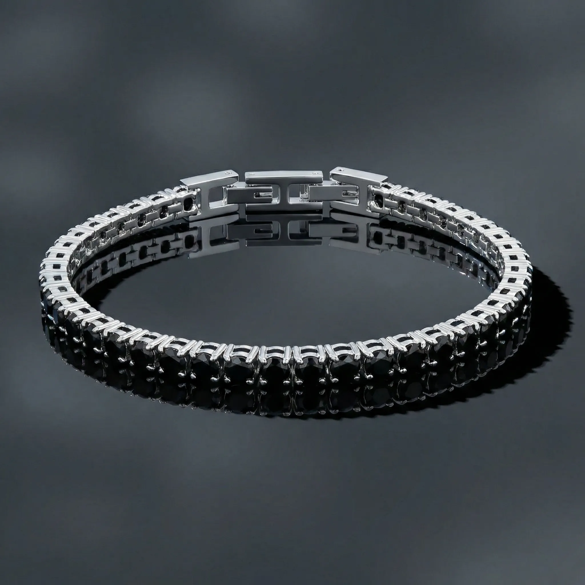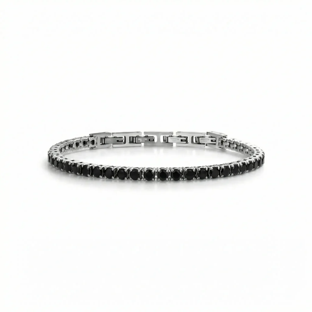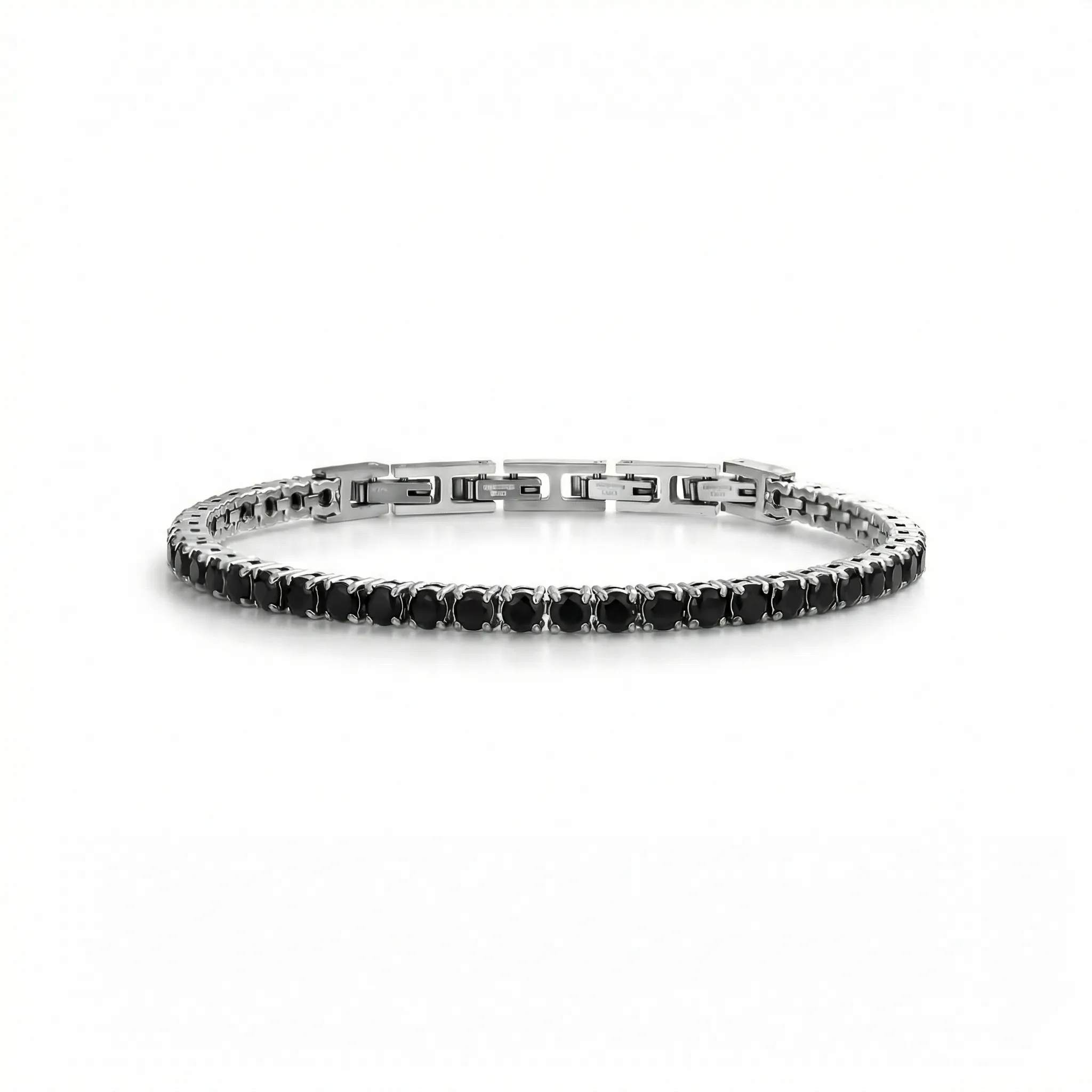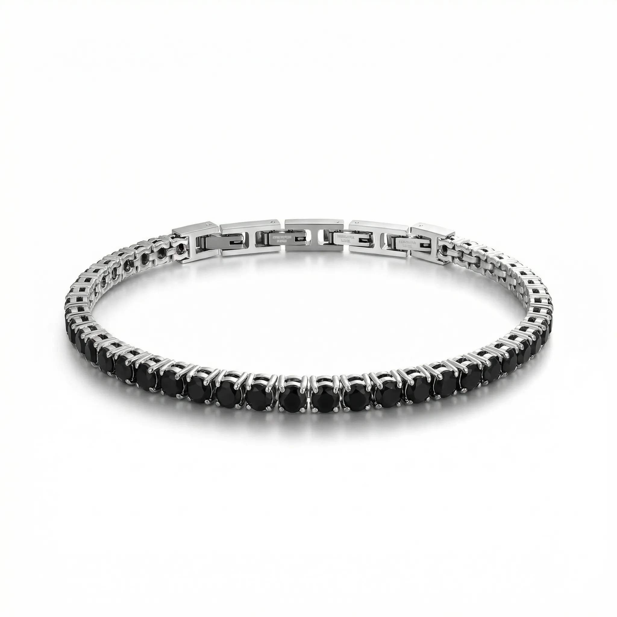 צמיד טניס בשילוב זרקונים מתנה יוקרתית לגבר שחור וכסף