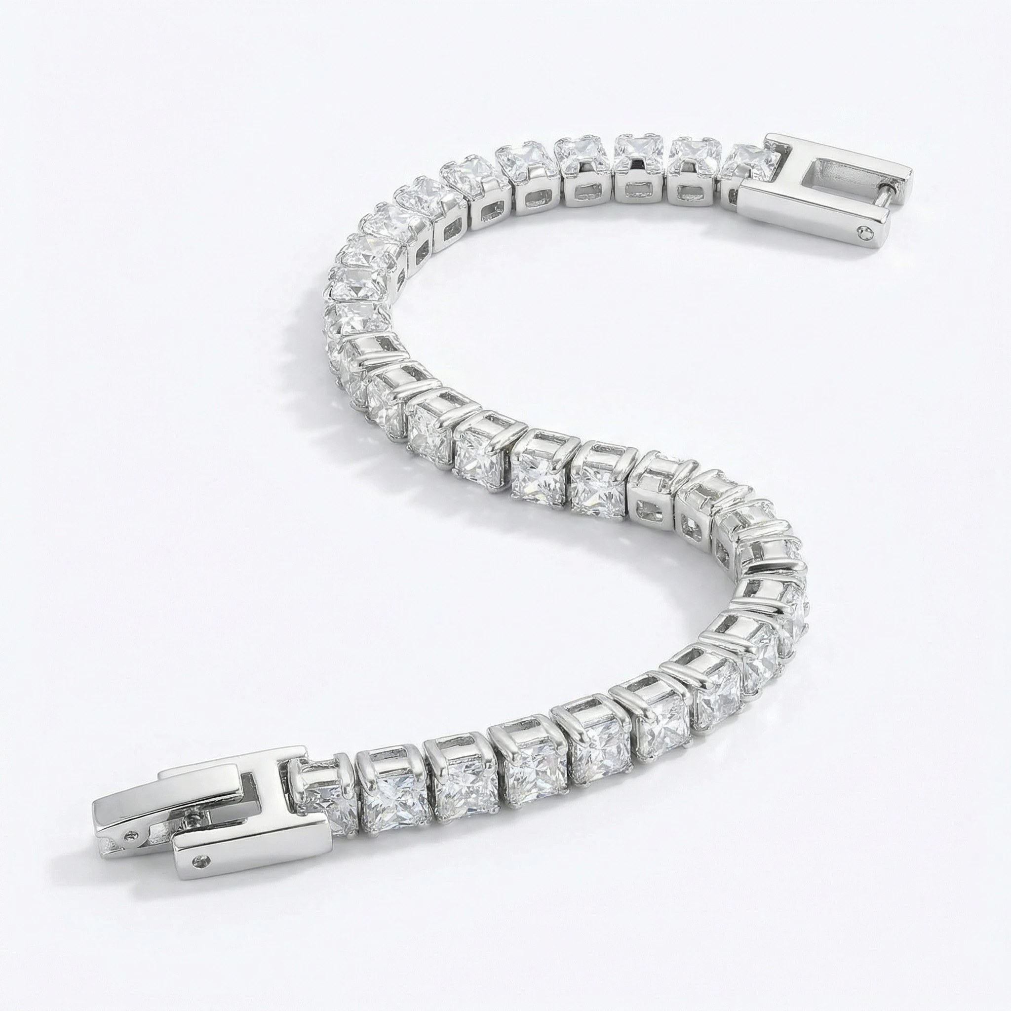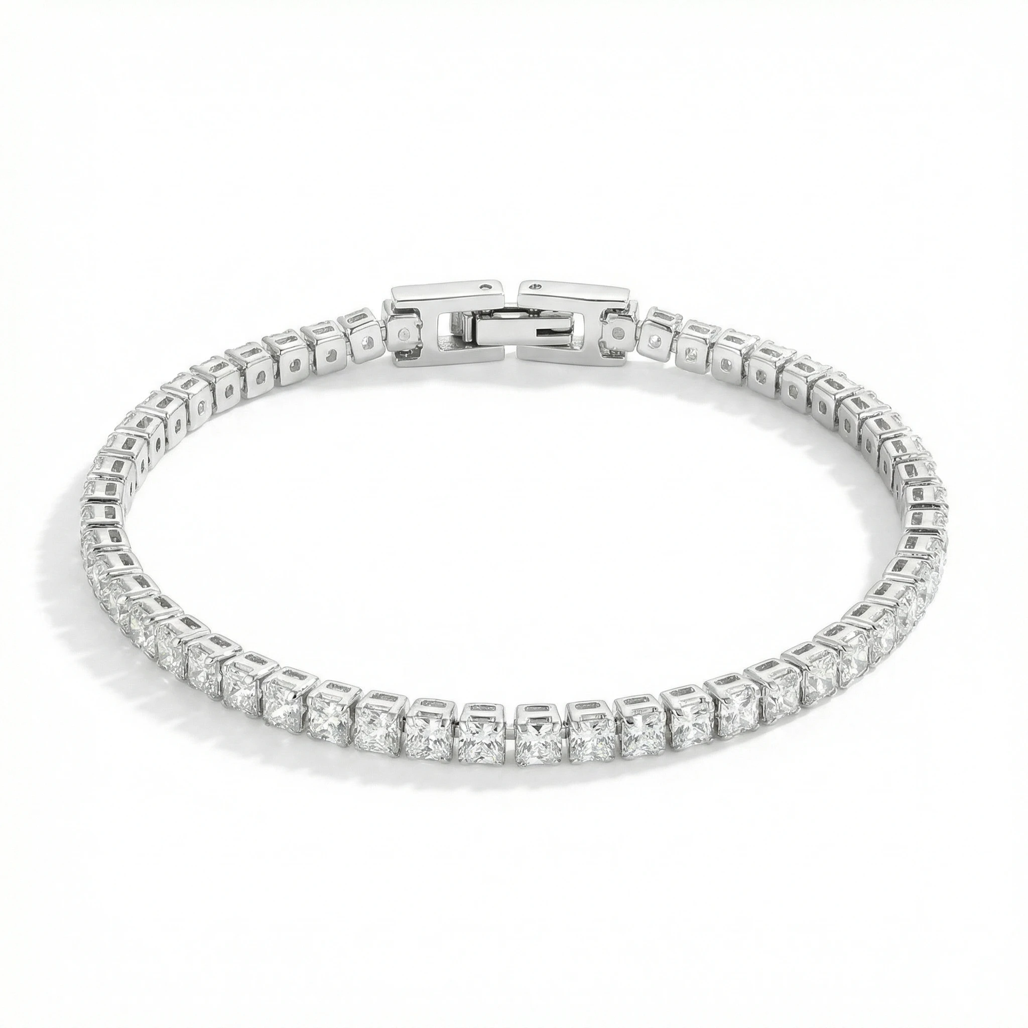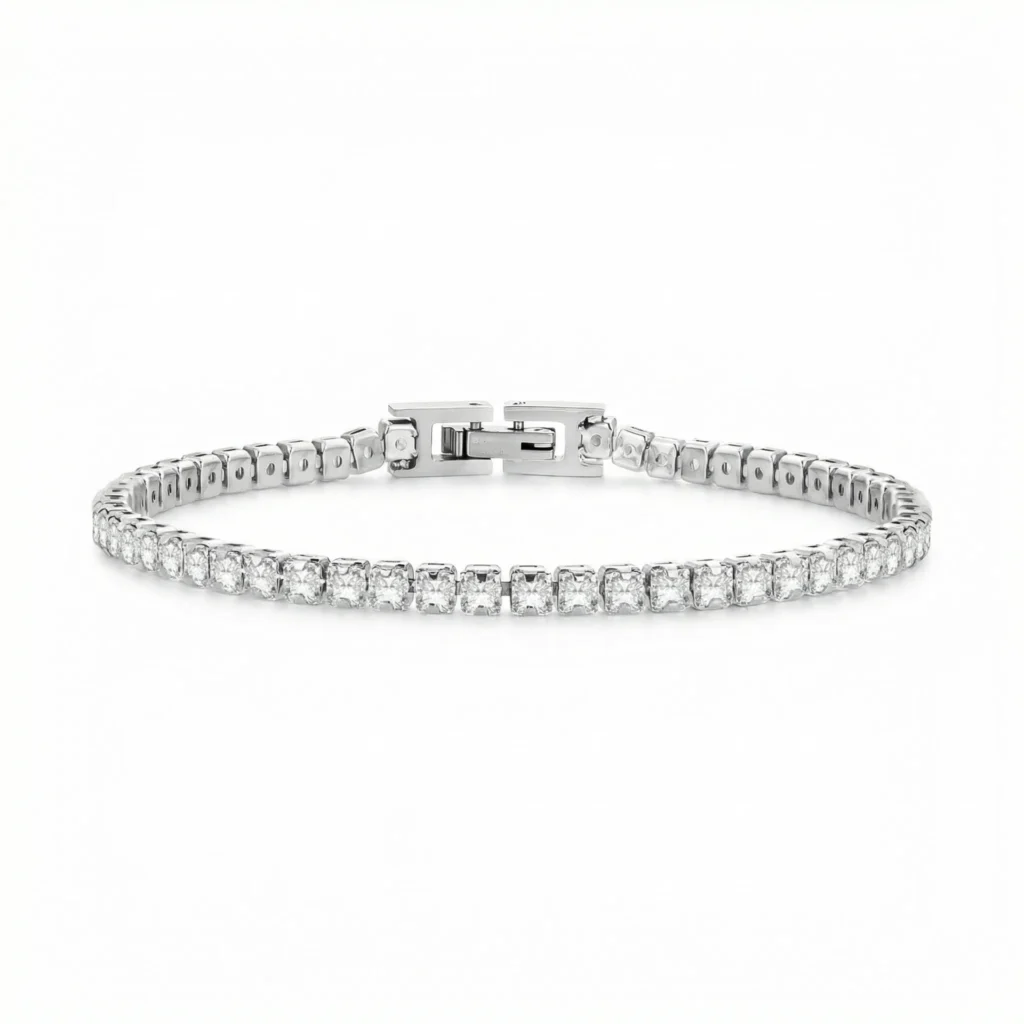צמיד טניס בשילוב זרקונים מתנה יוקרתית פלדת אל חלד בצבע כסף