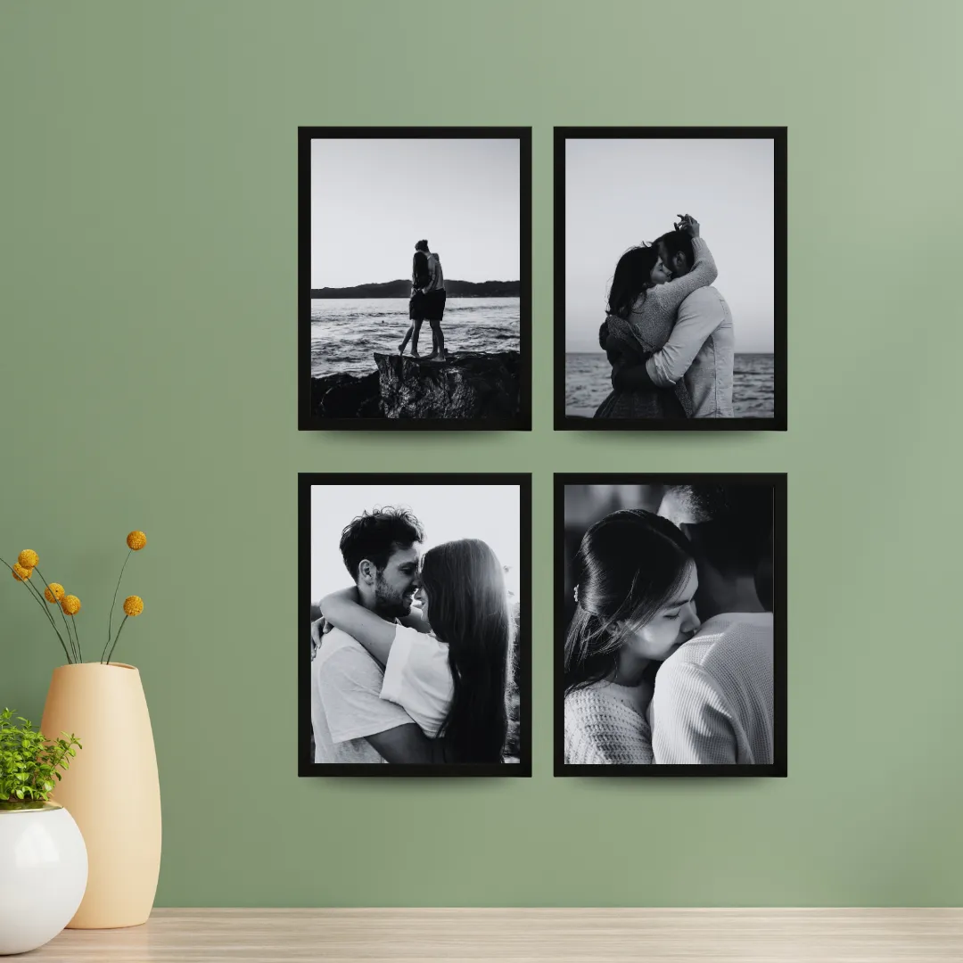 קיר גלריה מעוצב: 4 מסגרות עץ עם פיתוח תמונות