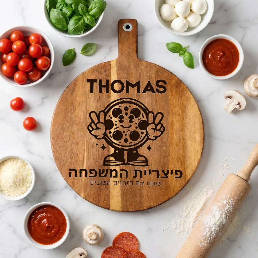 קרש חיתוך לפיצה חמודה עם חריטה אישית