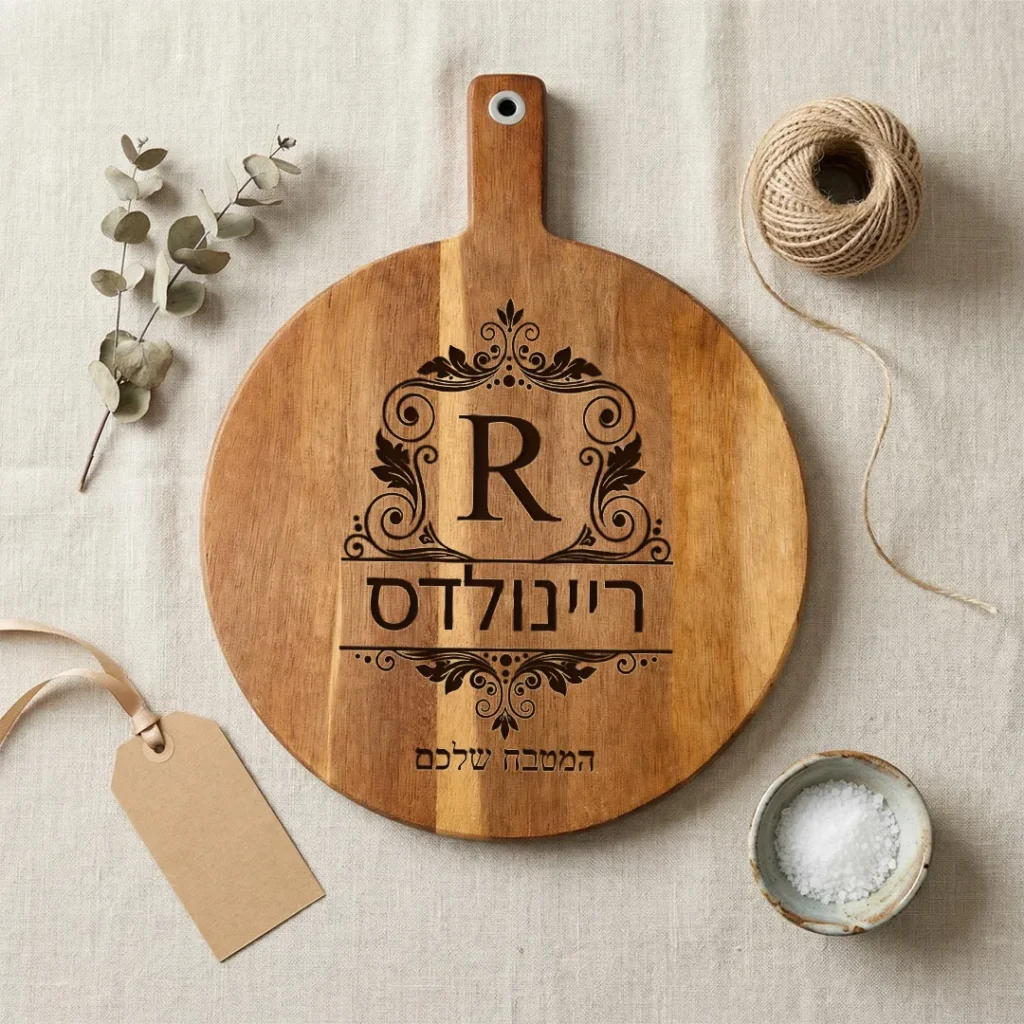 קרש חיתוך עם חריטה של ראשי תיבות ושם בהתאמה אישית