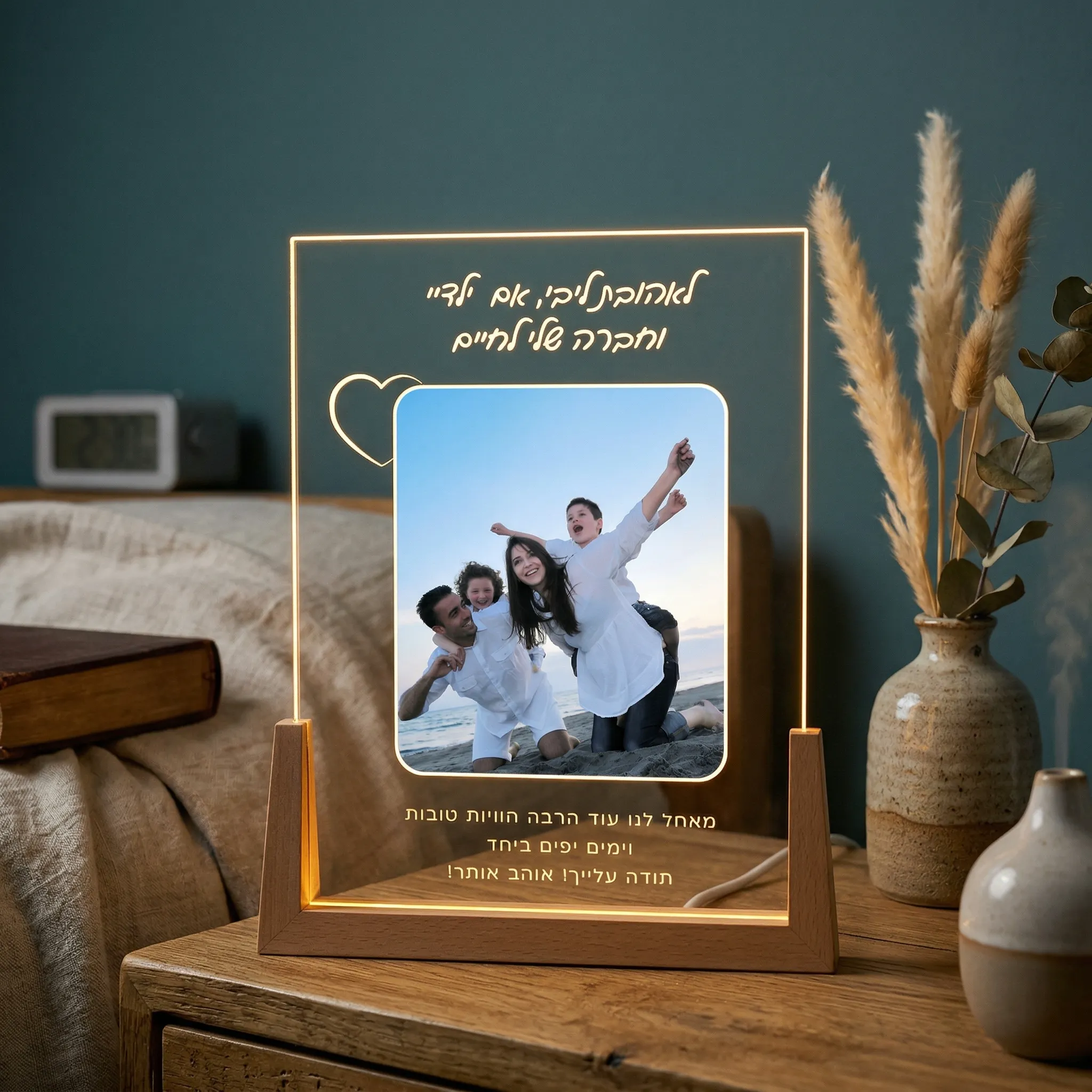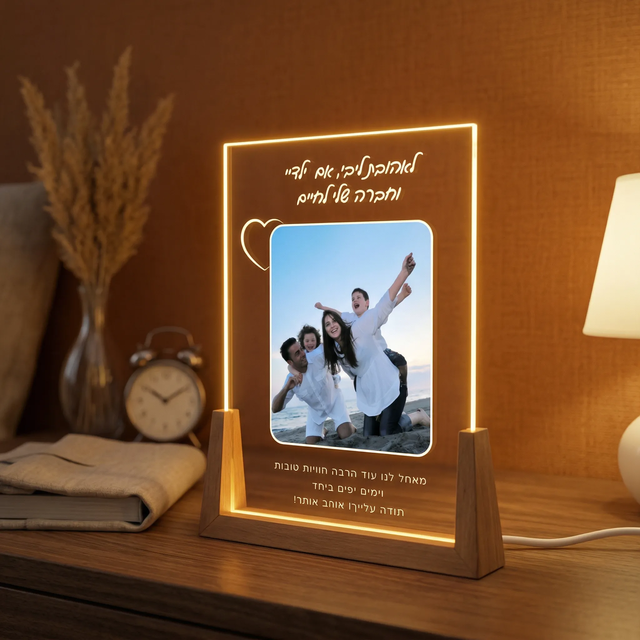 מנורה לבן/בת זוג – מותאם אישית עם תמונה והקדשה