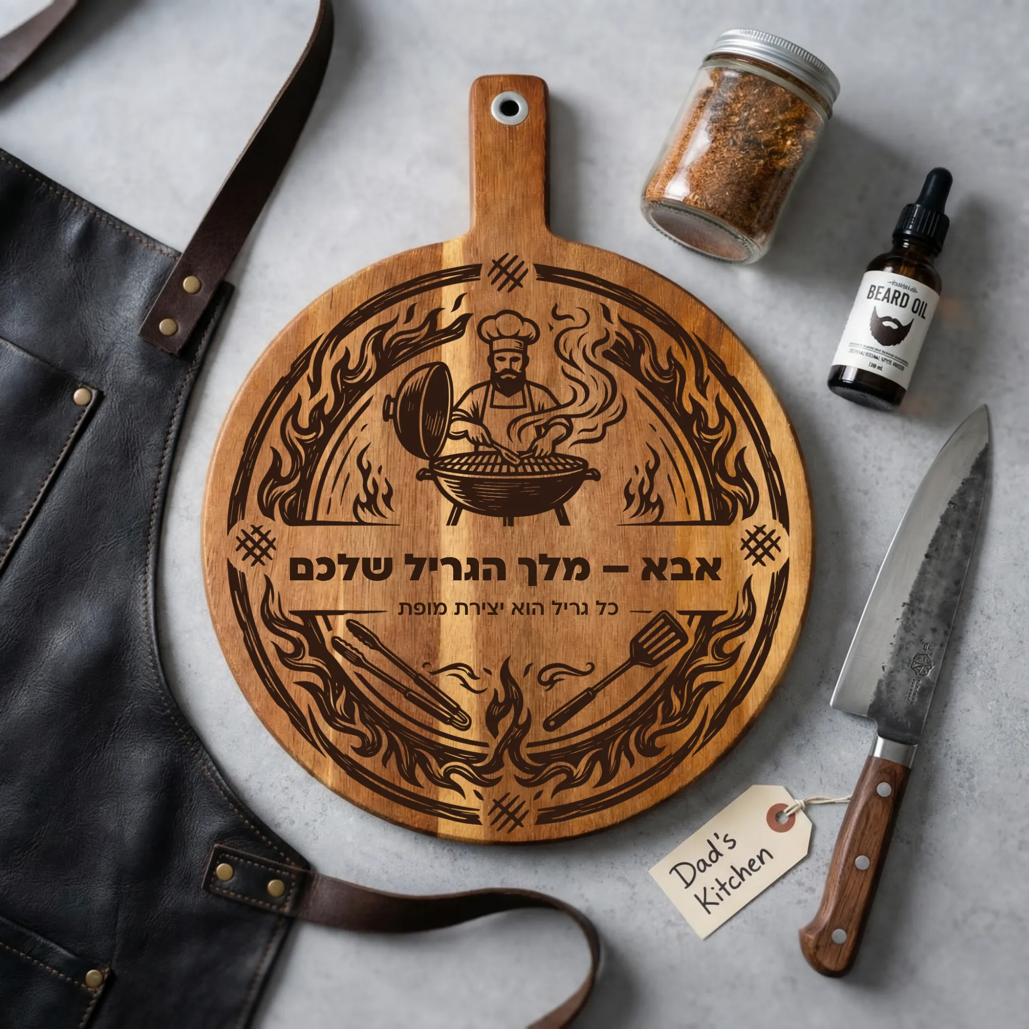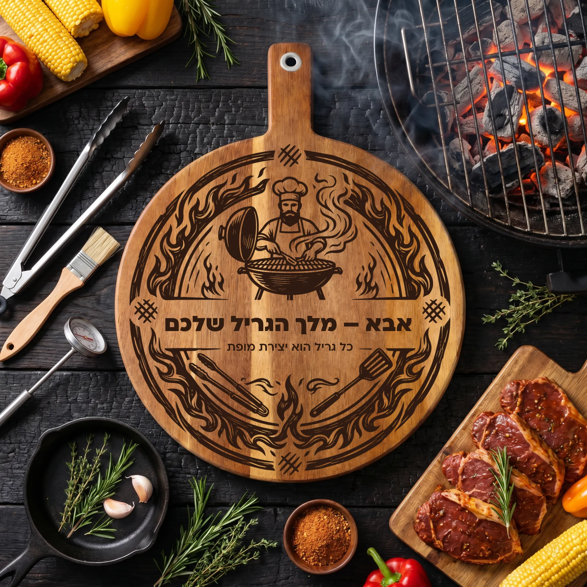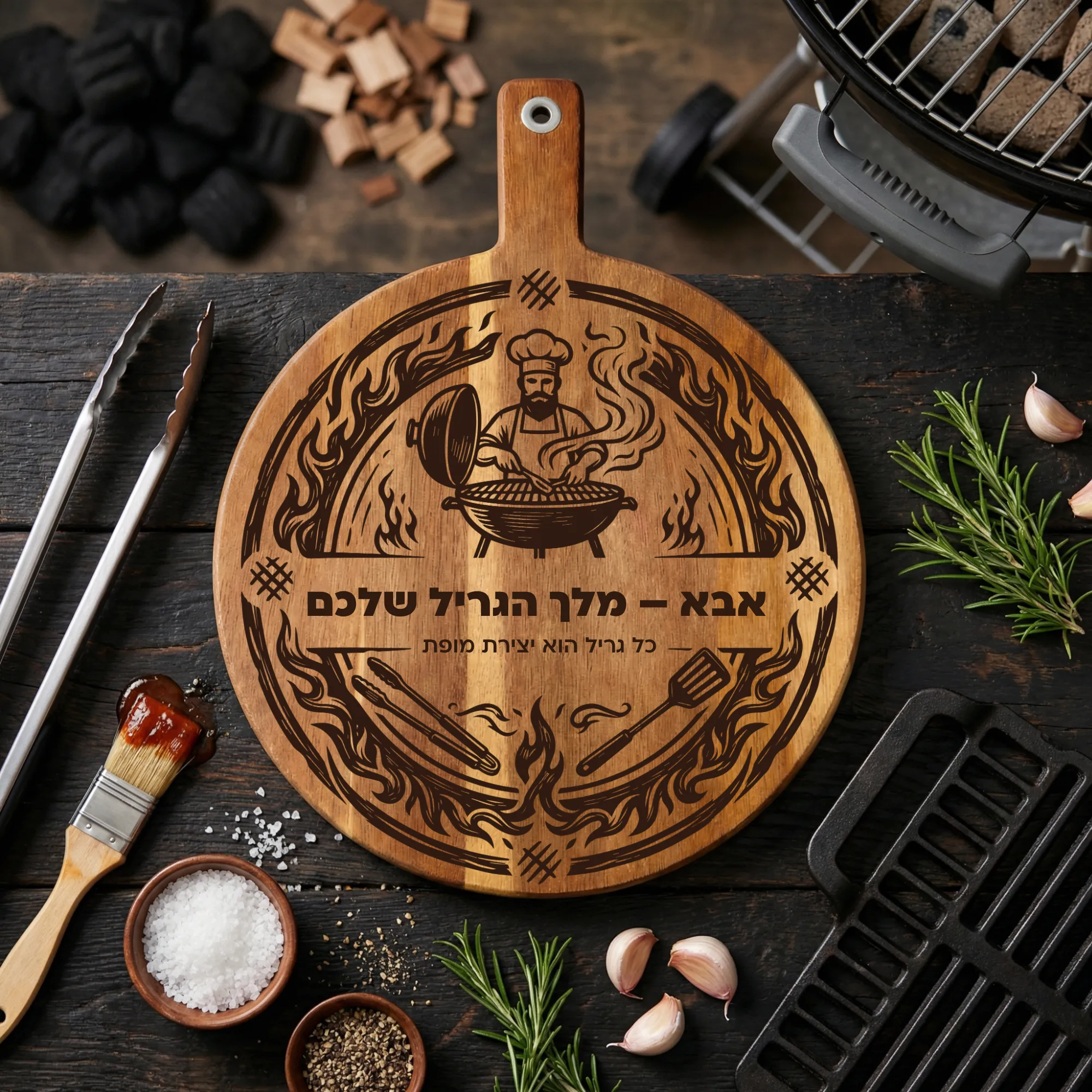 קרש חיתוך לברביקיו בהתאמה אישית – מתנה של קרש חיתוך חרוט בעיצוב מותאם למאסטר הגריל