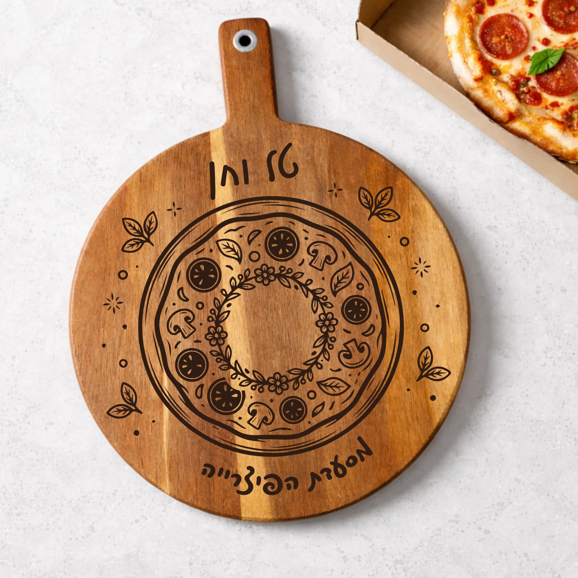 מיועד לערבי פיצה – קרש פיצה עם חריטה בהתאמה אישית