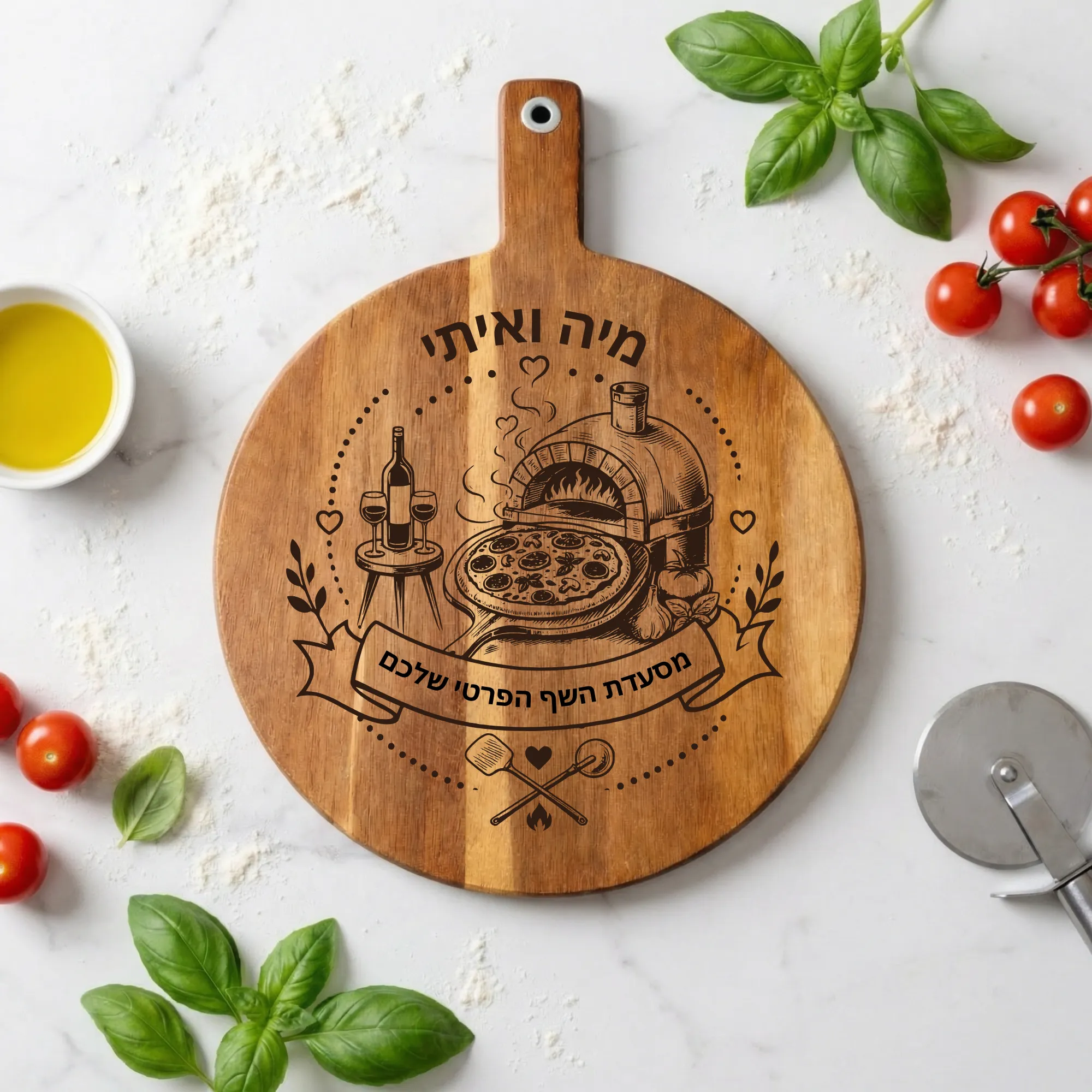 קרש חיתוך פיצה מותאם אישית – מתנה ייחודית לחנוכת בית או ליום הולדת